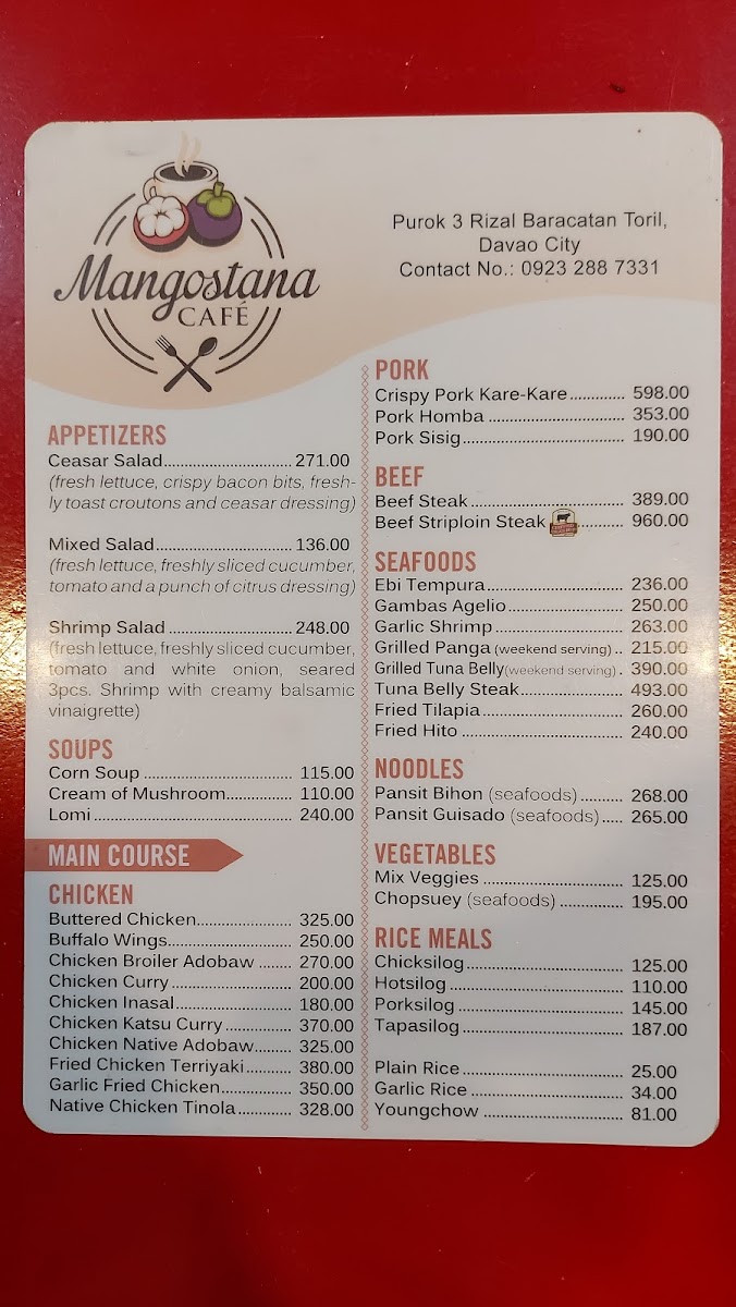 Welcome to Mangostana Cafe, a charming café nestled in the natural beauty of Purok 3 Rizal, Toril, Davao City. This unique spot perfectly blends relaxation and delicious dining, making it an ideal destination for families and nature lovers alike.